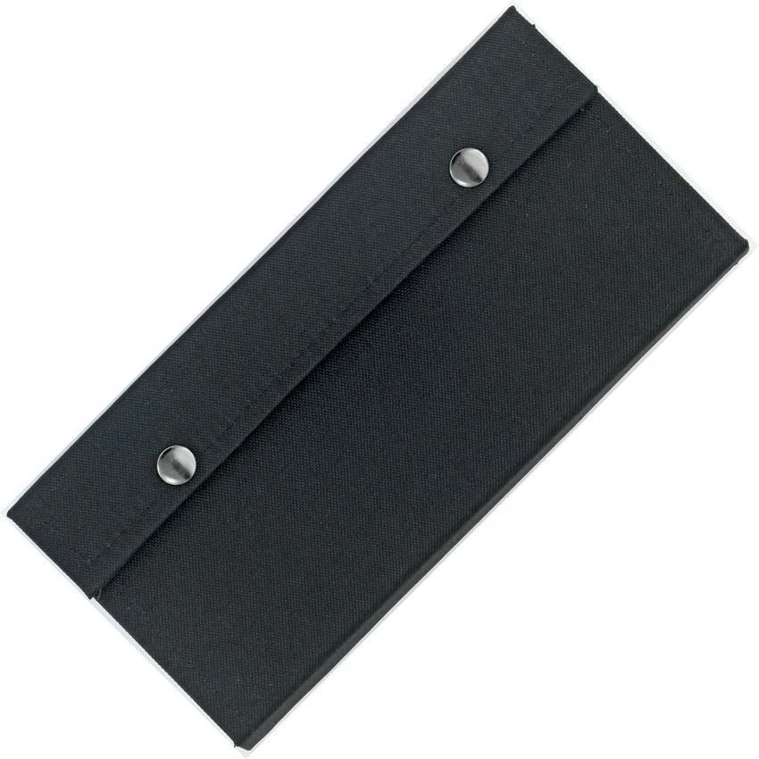 Measures 10 1/2″ x 4 7/8″ closed. Durable black Cordura construction. Brown velvet lining. Durable elastic straps to hold knives securely. Holds 12 folding knives. Snap closure.