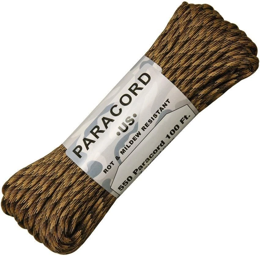 Genuine 550 cord. 7 strand cord. 100 ft Made in the USA. Colour: FDE Camo