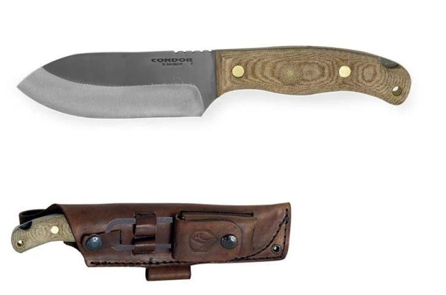 Designed by Walter Matthews the Condor Toki knife has a full tang blade and is great for carving. The ergonomic handle features a finger grip that gives you amazing precision. The blade is drop point with a convex edge and is made from 1075 high carbon steel. Its curved handle in the back has a 90° striker for fire starting with ferrocerium rods. It also has a concave notch of excellent diameter, which allows the faster and more stable spinning for use as a “Bowdrill.”