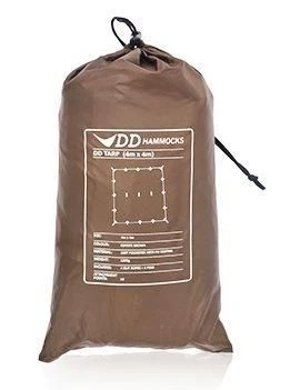 The massive DD Tarp 4×4 is the ultimate dry cover solution for groups, teams and work spaces. 19 reinforced attachment points allow for a whole variety of set-up options, whether that’s to cover a few hammocks at once or to form a sturdy shelter for you and your friends. Your team’s go-to shelter You can count on the DD Tarp 4×4 to shelter you and your team from the elements on a backpacking trip, event or work activity. Scout groups or survival camps will also be grateful for its ample dry cover. Close it off or make it a canopy – it will stand up against anything the weather has to throw at you! Alternatively, use it to extend your caravan porch or form it into a customisable tent for you and your friends out on the trail. 19 tough reinforced attachment points: 16 around the sides and corners, and 3 along the centre (ridge line) 4 pegs and guy lines included in their own bag Made from 190T polyester with PU 3000mm waterproof coating, and has a taped central seam Stuff sack with drawcord closure