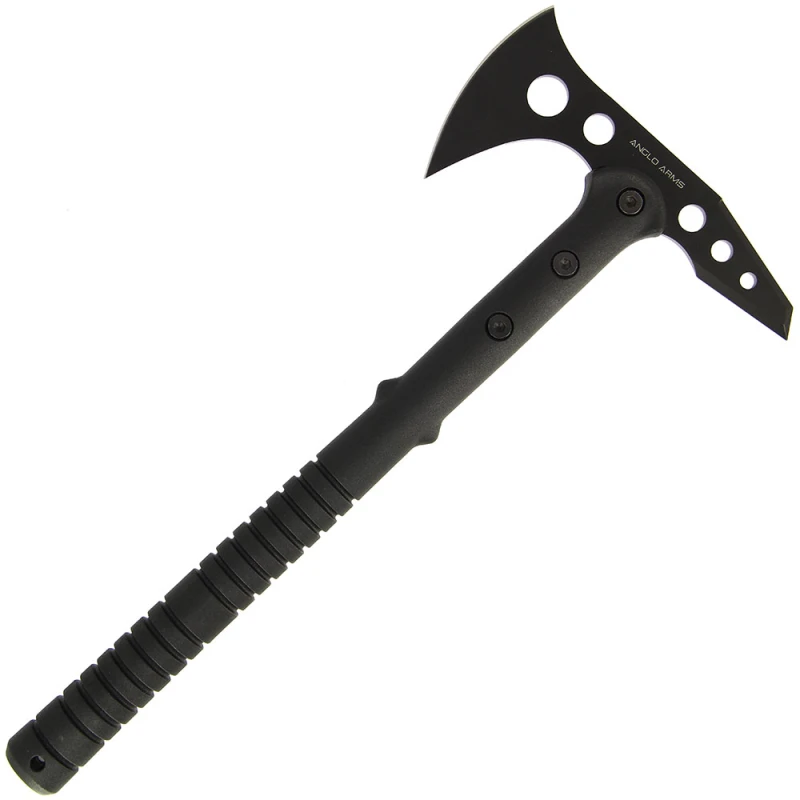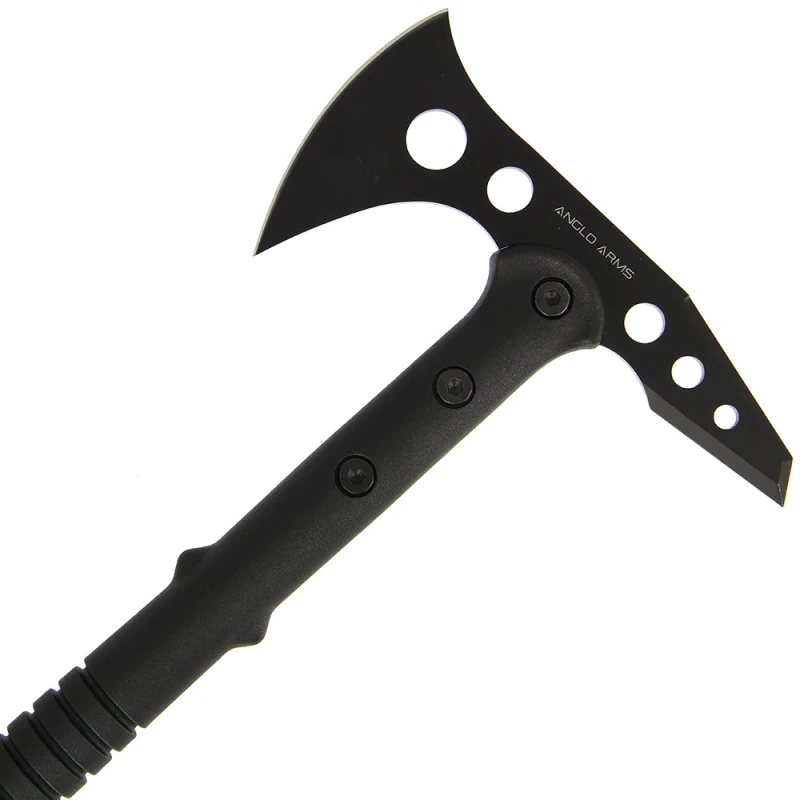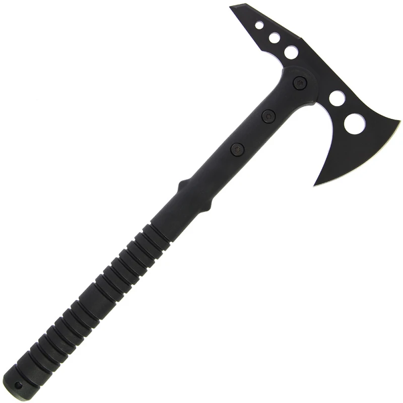 A lightweight, double sided axe and pick with nylon glass fibre handle and nylon case with belt loop.