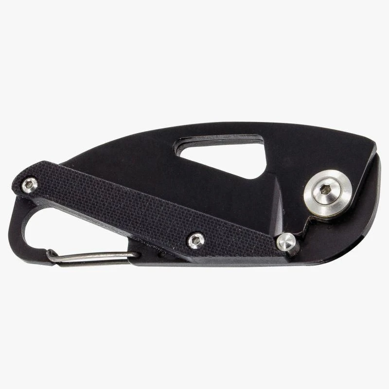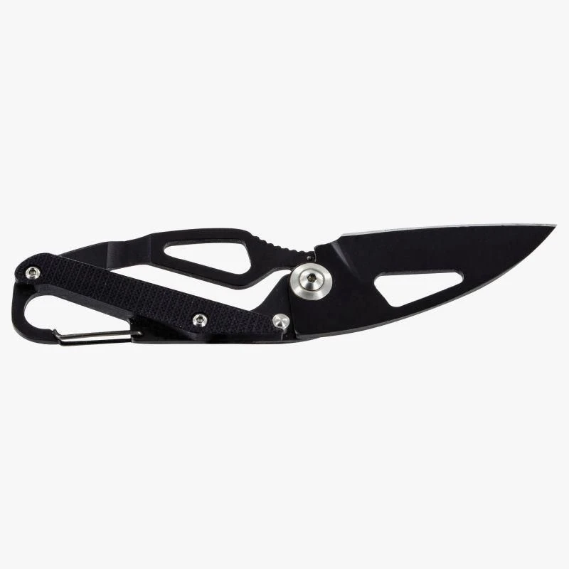 A sturdy and lightweight folding knife that locks into position with integrated karabiner style clip.