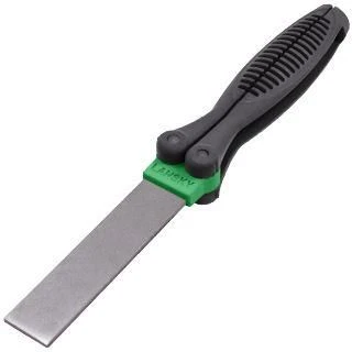 These handy sharpeners feature a generous 3.625”x 0.8125”/9.2 x 2.1cm paddle with full medium diamond grit surface for fast, easy sharpening of the hardest steels. When not in use, it folds into the comfort-grip, non-slip handles for easy storage.