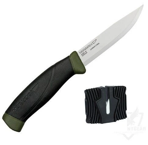 To make this easier to carry or bring along in any trip or adventure, the Mora Companion 840MG with Sharpener comes with a green plastic sheath plus a belt clip.