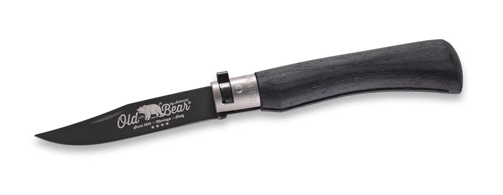 Black PTFE coated stainless steel Blade salt etched with “Old Bear” logo