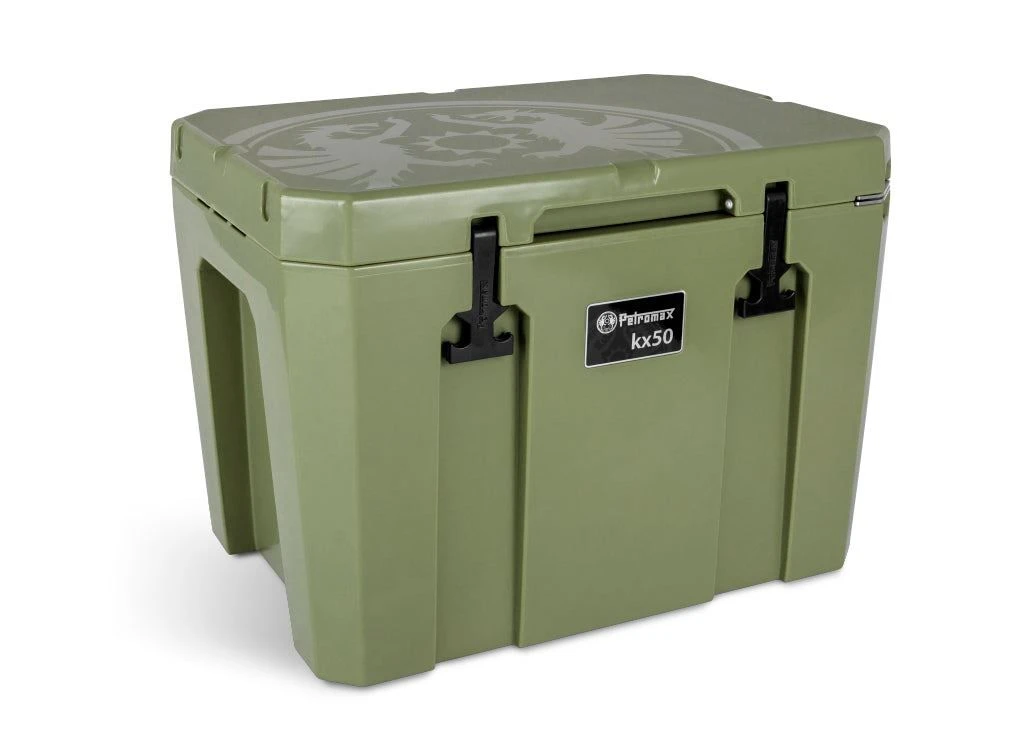 Being well prepared for days without electricity? The Petromax Cool Box kx50 allows you to provide for yourself during a multi-day adventure. The ultra passive cooling system only operates with commercially available ice, cold packs or dry ice. The double-walled, void-insulated kx50 keeps ice cool for up to 12 days on end without a compressor or absorber.