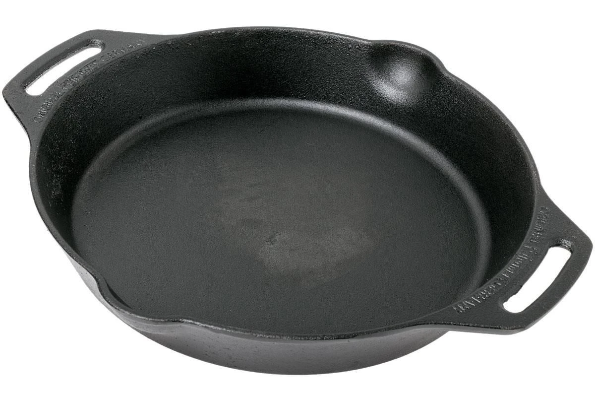 The high-quality cast iron with its outstanding heat distribution can be used immediately and is easy to clean thanks to the pre-seasoned surface. The durable and sturdy skillet has a natural anti-adhesive effect which improves at each use, because a patina forms. Moreover, cast iron stores heat well, which is why you can serve meals directly in the skillet.