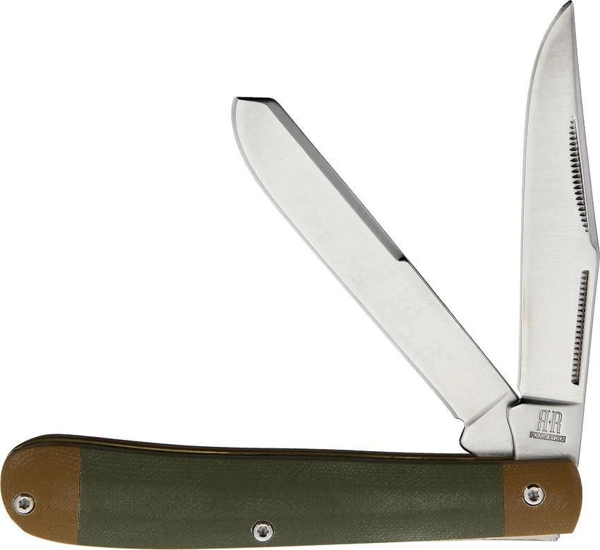 Classic G10 Series. 4.13″ (10.49cm) closed. Satin finish stainless clip and spey blades. Green and tan G10 handle. Boxed.