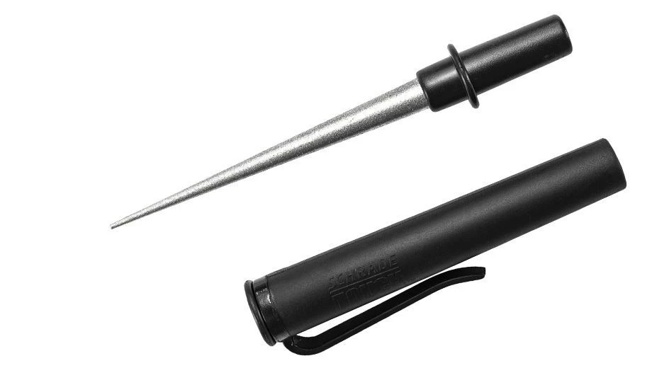 Schrade Compact Pocket Carry Diamond Dust Tapered Sharpening Rod with Fish Hook Groove, Nylon Resin Handle and Carry/Storage Sheath with Pocket Clip