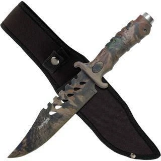 The blade measures 5.25″ and is constructed out of stainless steel finished with a camo coating. The handle is contoured injection molded ABS with a matching camo coating. Includes nylon sheath.