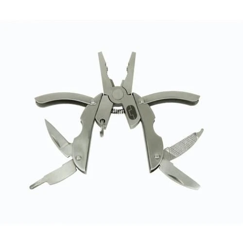 The Scarab has a unique contoured folding-handle design makes it both comfortable and compact. Serrated needle nosed pliers and wire strippers, Phillips screwdriver, knife, file, flat screwdriver and removable key chain.